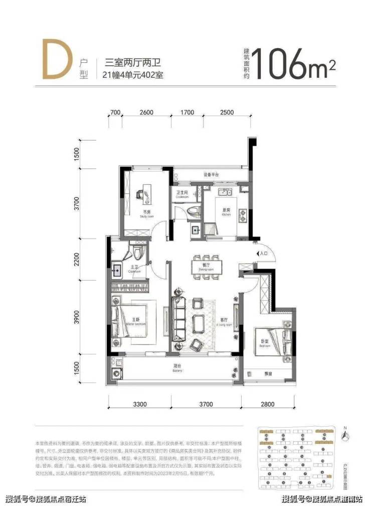 约106㎡的三房两厅两卫户型星创云珹府售楼处电话☎:400-998-9694✔✔ ,户型方正,两房朝南;约7米的大阳台,可用于生活、休闲;U型厨房,让烹饪的动线合理。