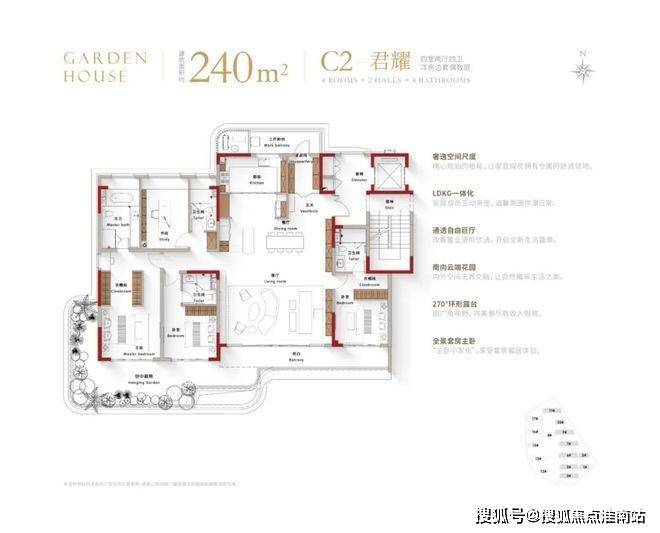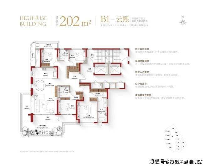 再来看看户型设计,完美呼应了四代宅的超高使用率,空中露台、阳台等各项数据的尺度非常惊人