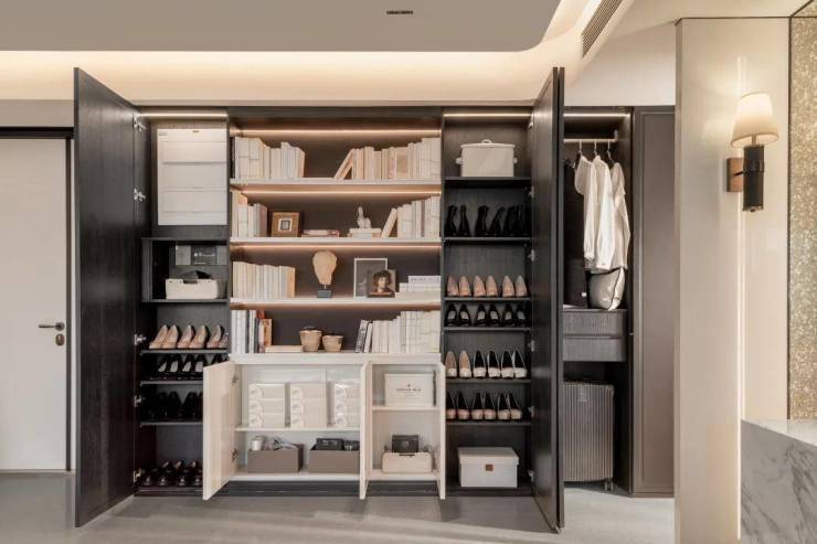 从入户玄关到主卧衣帽间,实现 全屋柜体满配交付。