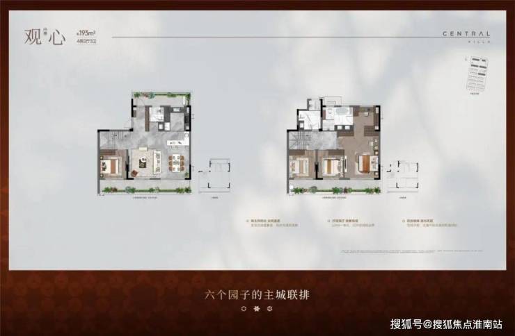项目主力打造 建面约195-245㎡主城联排、建面约169-193㎡低密叠加。