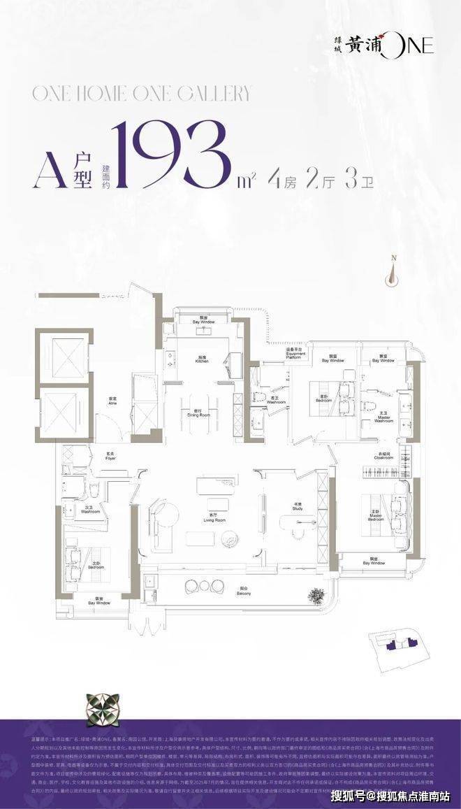 ·建面约193m²户型,主力总价3400万左右