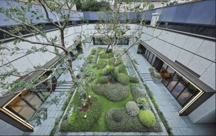 琉璃水院是“公园东序”会所的灵魂所在,各功能空间皆以它为中心分布,大面积玻璃窗则让每个空间都拥有了独特的窗外风景。