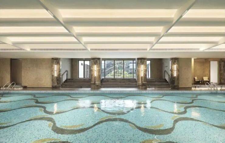 例如在池底细节、灯具细节、格栅细节等细节,均精心采取宝格丽经典扇形与灵蛇纹样,以优雅的艺术与品位,起底生活的质感。