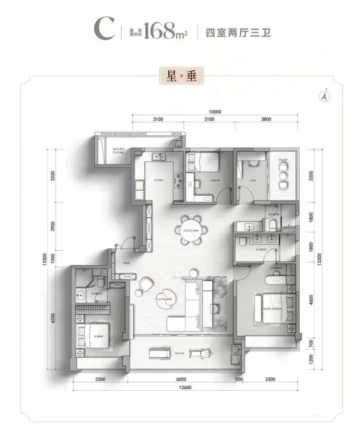 中叠独立私梯启幕归家礼序,餐客通厅铺展开阔社交场域,阔景阳台引清风明月入怀,揽景莳花皆得逸趣,主卧套房从容舒展,南北向次卧清雅安宁,生活张弛有度,精神与空间皆得丰盈。