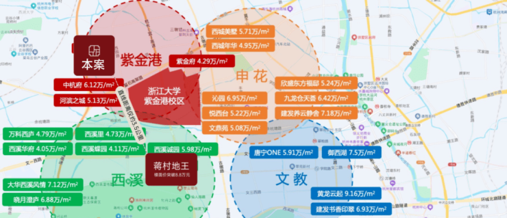 2.高潜板块——前有3.5公里蒋村8.8W/㎡地王,7W+近邻中杭府,土地潜在红利巨大