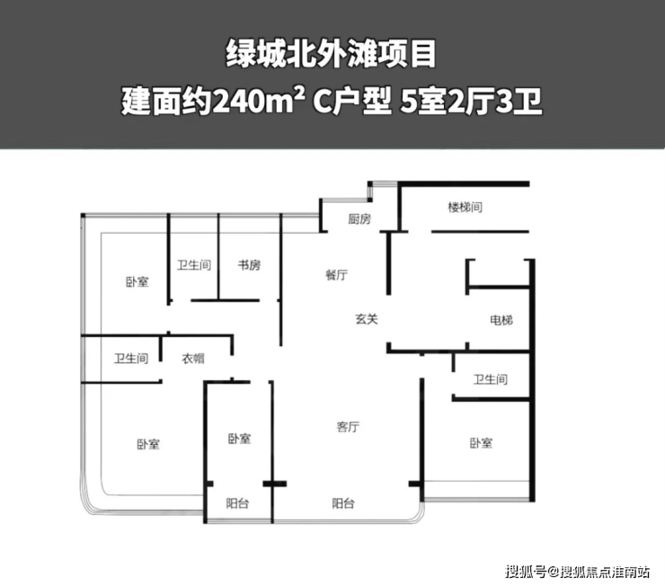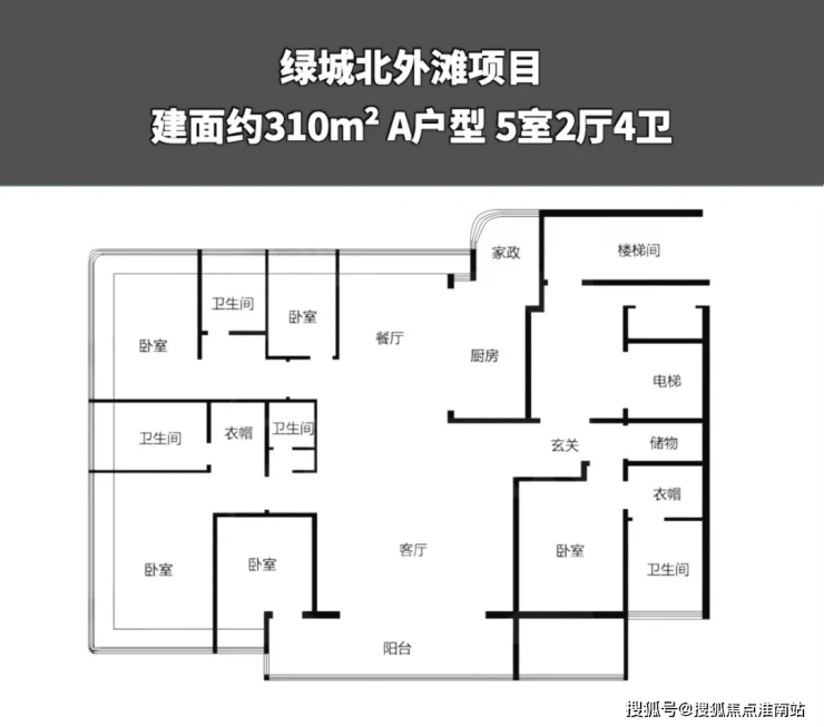 户型方面,整个小区计容面积 5.1 万方,没有住宅套数下限,也没有中小套型占比限制。预计均为大面积+大面宽户型。从规划图可以看出,两梯两户,有三阳台和全飘窗。