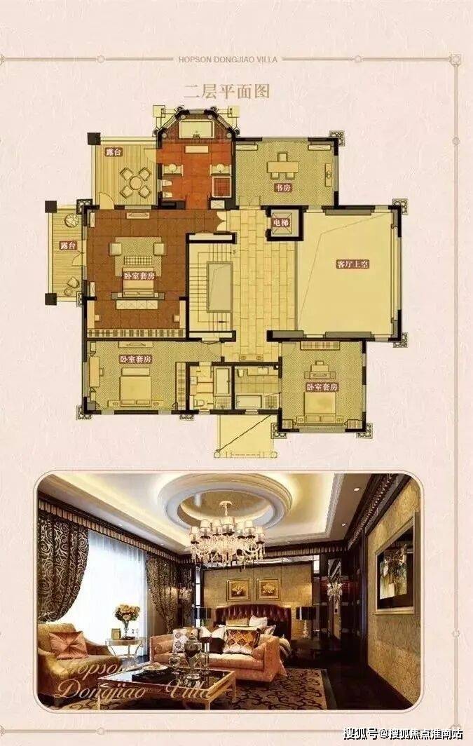 D户型(翠苑):约875㎡,五房+多功能房,挑高6米主会客厅,私密性强;