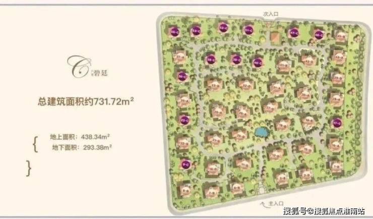 ③、C(碧廷):(集中绿化、错层)建筑面积731.72㎡(地上建筑面积438.34㎡,地下建筑面积293.38㎡)。