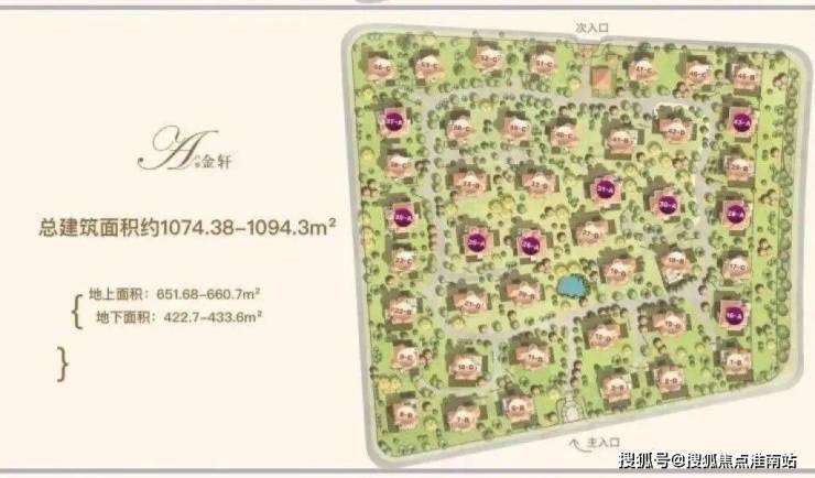 A户型(金轩):约1074–1094㎡,六房以上,双首层设计,带全明地下空间,部分户型配泳池。