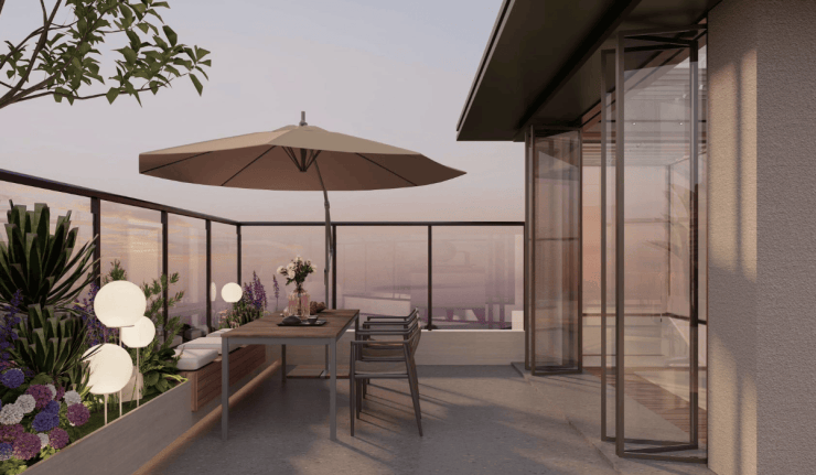 上叠(118-123㎡):270°瞰景阳台+双露台,可拓展屋顶花园(40-60㎡),3室2厅3卫。