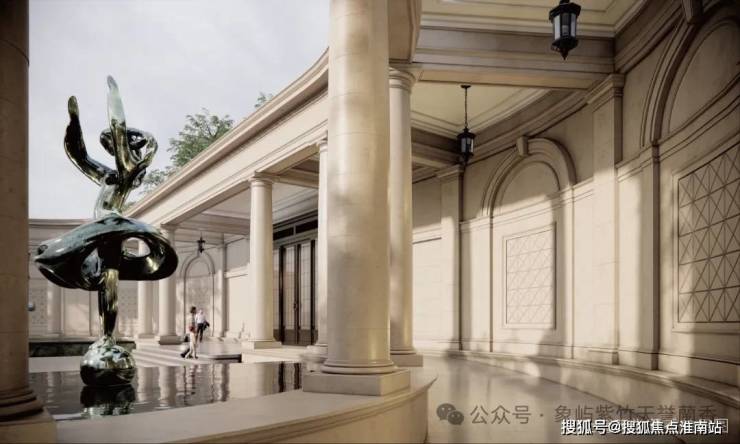 约32米归家礼序门庭,以14根多立克柱式列阵,缔就层峯归家的“隆重感”;溯源伦敦老牌豪宅区,以切尔西公寓的“三段式”美学立面,通过黄金比例分割与横向线条延展,将英伦百年美学凝练于建筑肌理;建筑细节融入斯卡帕叠级,光影流转中共谱空间韵律;跨越万里甄选的四大臻贵奢石,经“制表”级手工打磨,以毫米级拼缝铺装,让永恒之美凝固于方寸之间。