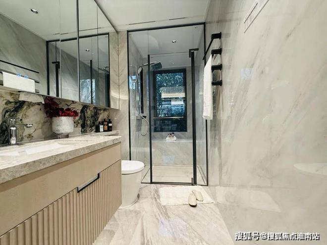 同时卫生间配有杜拉维特的面盆、汉斯格雅的龙头+五金、AO史密斯燃气热水器、杜拉维特智能马桶(建面约139㎡户型)、恩仕智能马桶(建面约110㎡户型)等国际一线大牌,这个标准放到南大甚至是整个中环沿线,都是顶配级别。