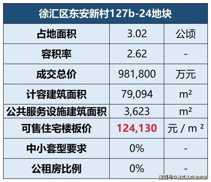 徐汇区C030301单元127b-24地块,用地面积30189㎡,容积率2.62,总建面79095㎡,限高100米。