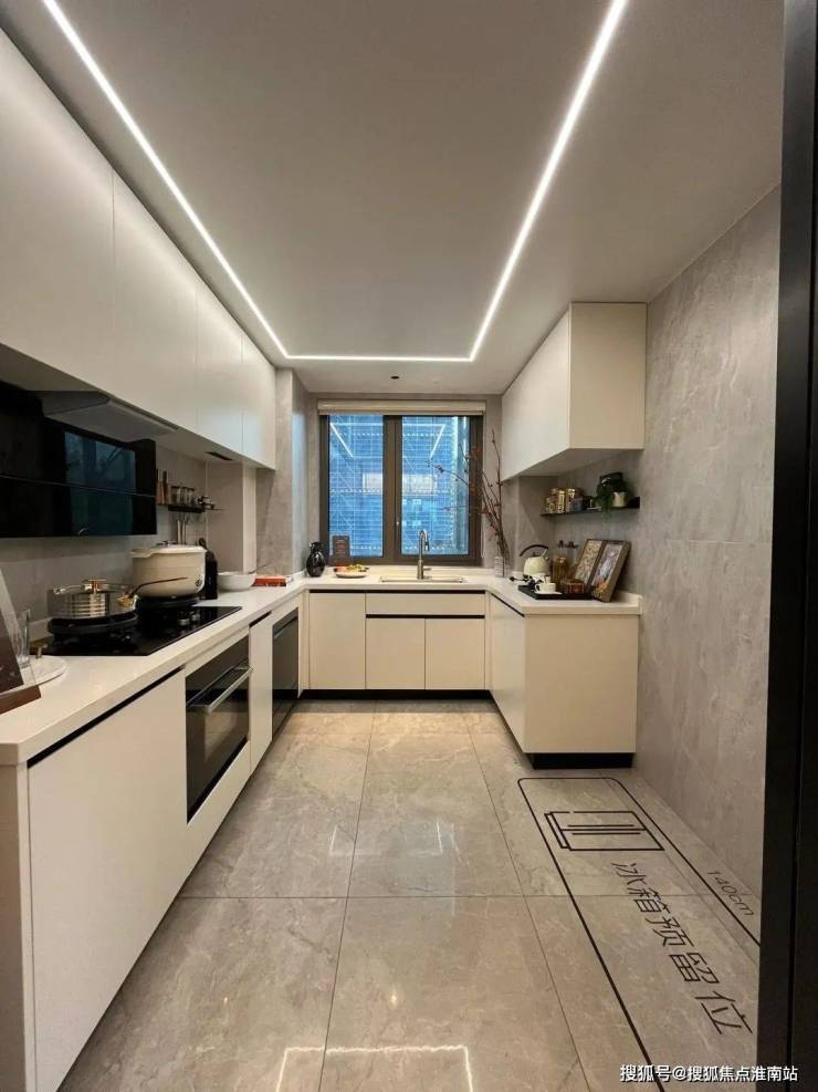 U型厨房,空间足够;做推拉门,打开和餐厅空间融为一体,关上之后是独立的空间,热爱烹饪的人可以尽情享受