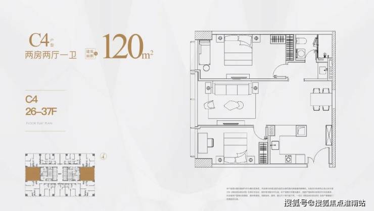 中区是26-37层,户型分别是 80㎡,107㎡,120㎡,125㎡;
