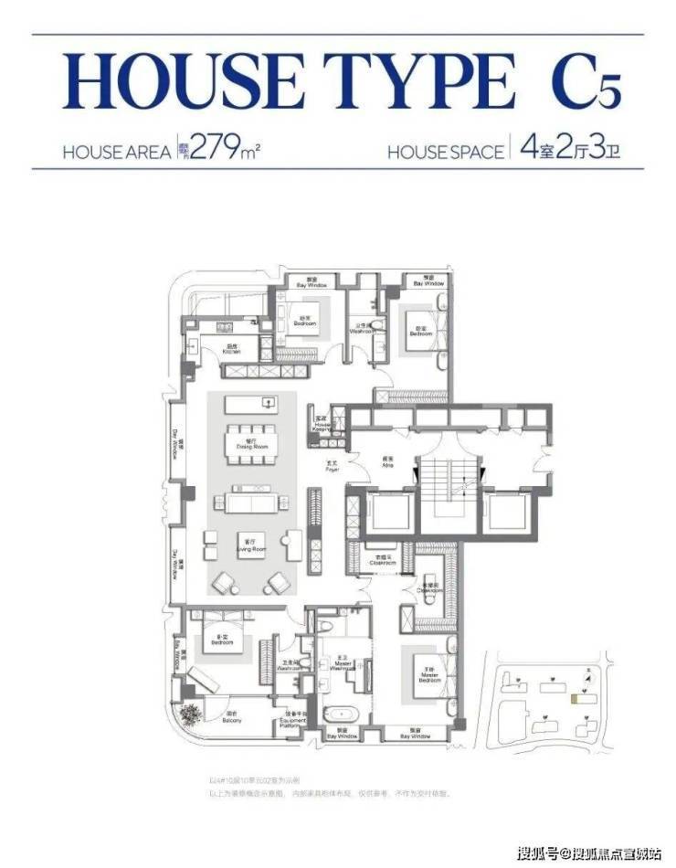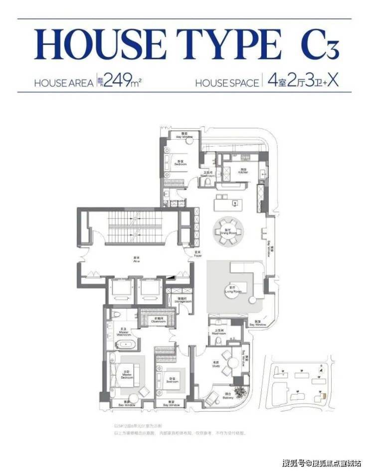 四居室:约240–320㎡(双主卧套房,X空间可变设计)