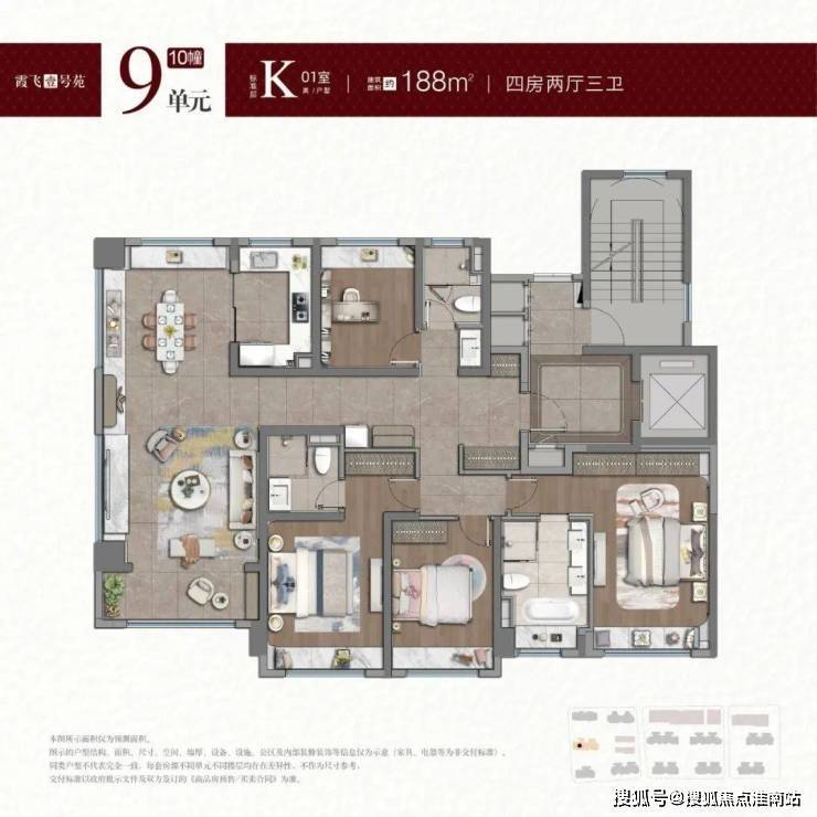 户型方面,项目将推出建面约98-122㎡3房及141-188㎡4房。