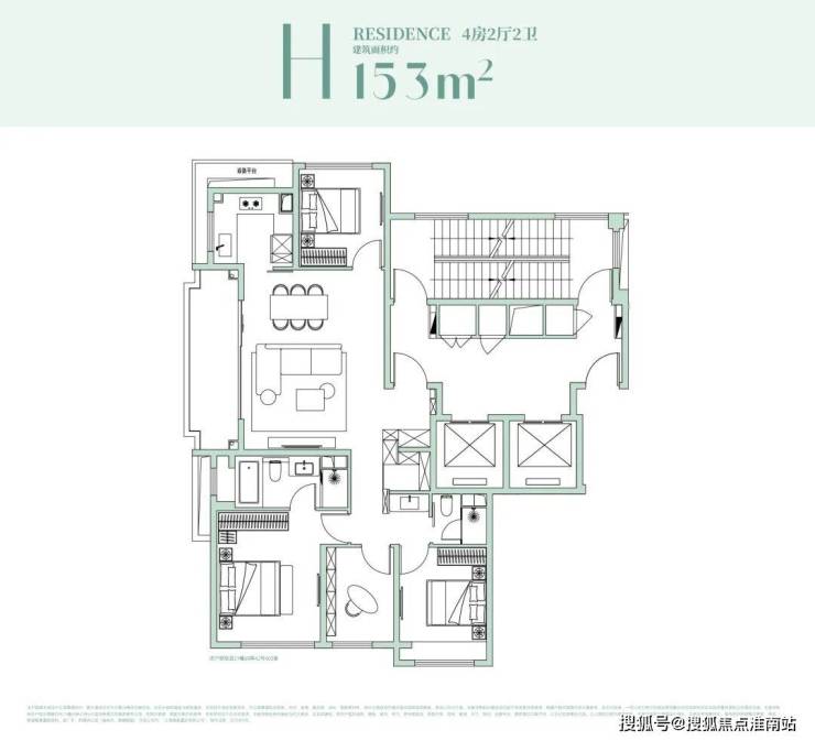 153㎡更像是这一组里的 “景观担当”。约6米横厅,不用刻意包阳台就能获得足够的会客与起居尺度;双梯两户、独立家政空间,让生活和社交动线各行其道。 南北通透的大面宽格局,让江景、园景和日常通风都处于更舒适的状态!