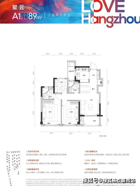 杭州罕见的建面约89方三房两卫精装户型