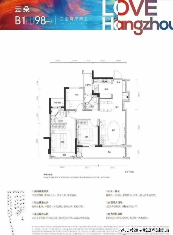 板块内罕见建面约98方边套户型,超大客餐厅