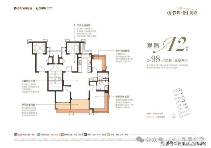 小高层类一梯一户、三阳台设计(部分户型) 、270°无柱飘窗(部分)