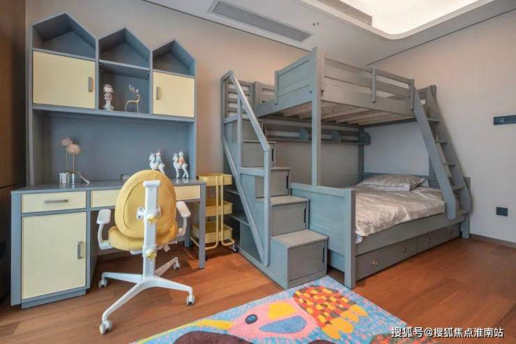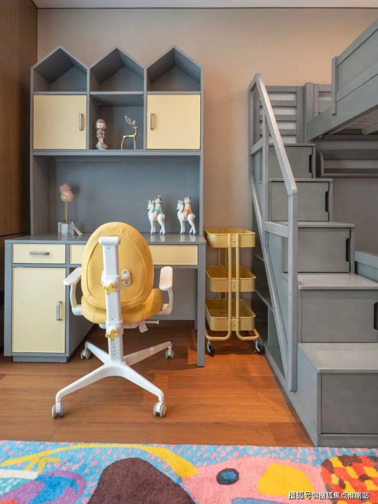 孩子们喜欢画画、弹钢琴等,而且小有成就。女儿房的书桌造型和呼应的饰品让空间流转着节奏和韵律,带来自由的动感和趣味。采光极好的窗户,静谧舒缓的氛围,让她们能够静下心来享受沉浸式阅读。