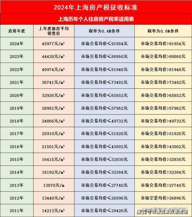 2024年3月13日,上海市统计局发布《2024年上海房地产市场综述》,其中谈到,2024年,新建住宅销售均价45977元/平方米,较去年环比上涨约3.48%,因此我们可推算出——2024年上海新购住房房产税适用税率: