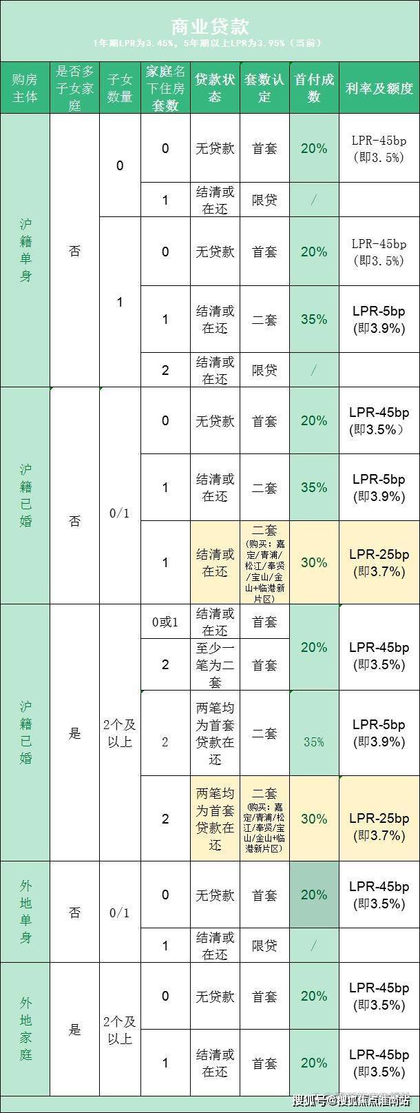 以家庭为单位,在上海名下无房为首套房,否则为二套。(需注意和贷款政策中首套房的认定标准不同,房产交易中心和银行是两个独立的部门)