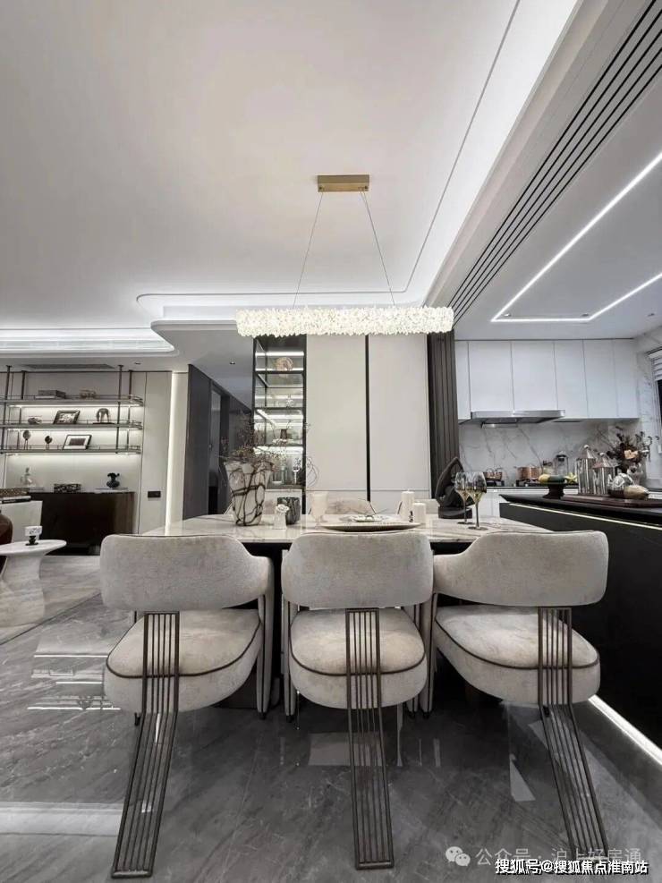 进到实地约99平样板房,整个玄关柜几乎全部都是皮质缝线包裹,细节拉满;