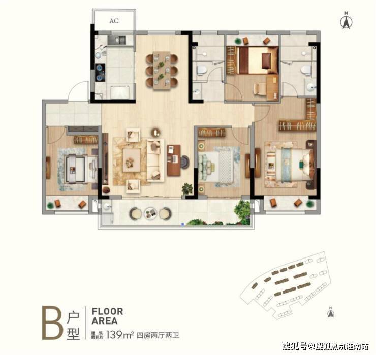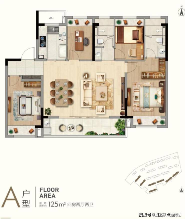 面积户型:125m²-139m²-165m²都是四房两卫户型