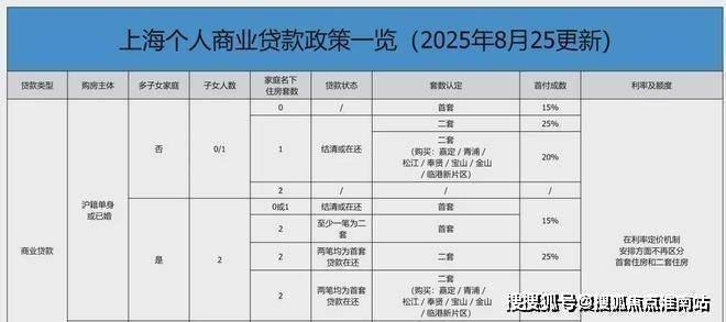 二、上海2025年8月最新购房商贷/公积金贷款政策