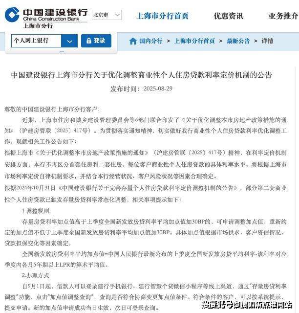据各家银行发布的公告来看,自9月1日起,可登录这些银行的手机银行等线上渠道提交申请,审核通过后,新的利率加点值当日生效。