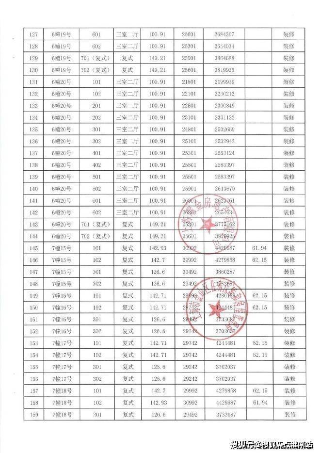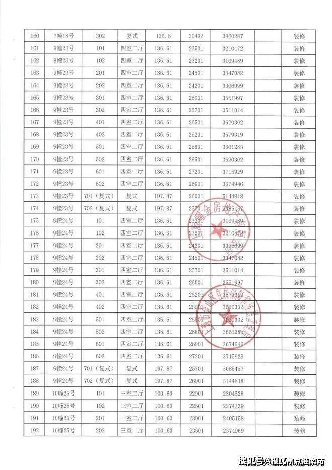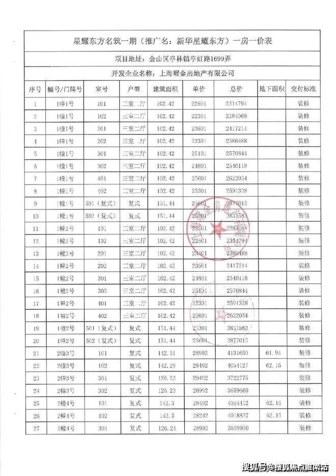 项目一房一价表