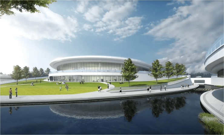 山坡里隐藏着篮球馆、真冰溜冰场、游泳馆、文化休闲等各类公共场所。整体建成后,从绿地外围及周边楼宇看过去,是成片的大绿地,而当游人步入绿地的下沉空间,绿色的山水间则呈现出丰富多彩的体育文化空间。