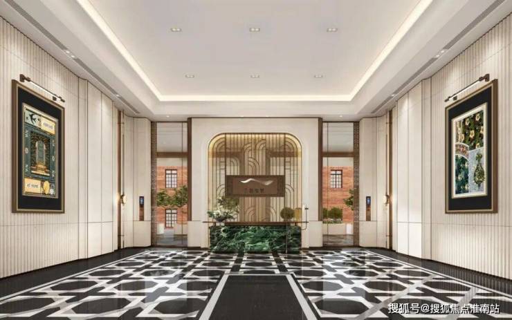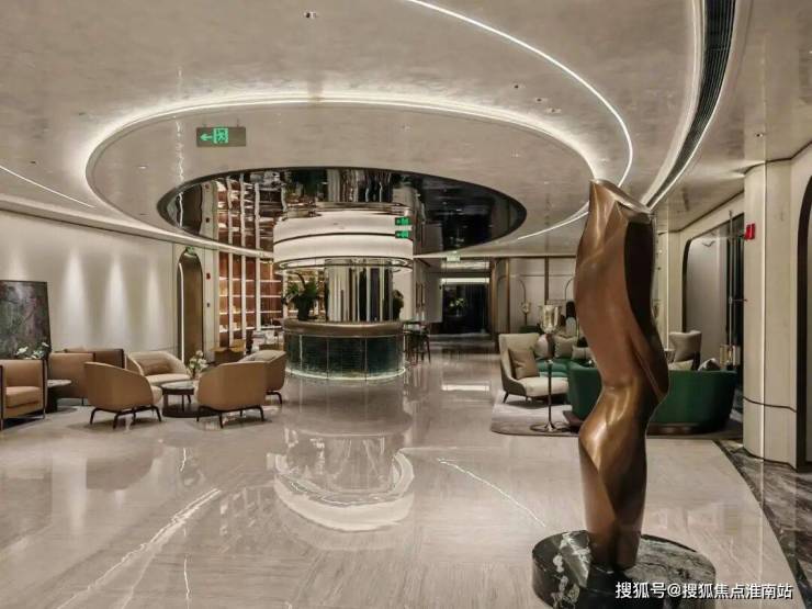 N+奢石铺装,从地面到公区,地下三层入户大堂荟萃普拉达绿石材、温哥华海石材、东方白石材、莫奈灰石材,特殊玻璃等,大手笔低营造调奢华的空间气场。