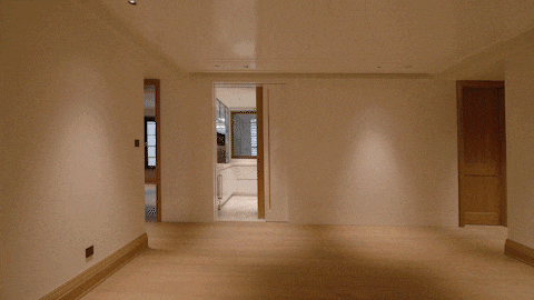硬装上以木饰面和米色石材做结合,物料原始肌理感,表达经历时间后的沧桑痕迹。大理石地面镶嵌精致金属条,保留材质的原始感,木饰面配柔和灯光,调和出安宁澄澈的归家氛围。