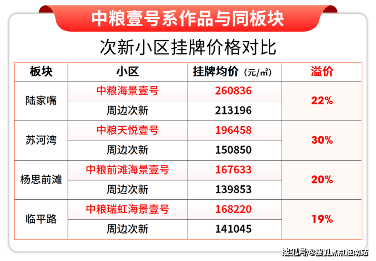 I have compiled the latest listing data on Lianjia website and found that the four No.1 series works are priced at a premium of about 19-30% compared to the sub new communities in the same sector!