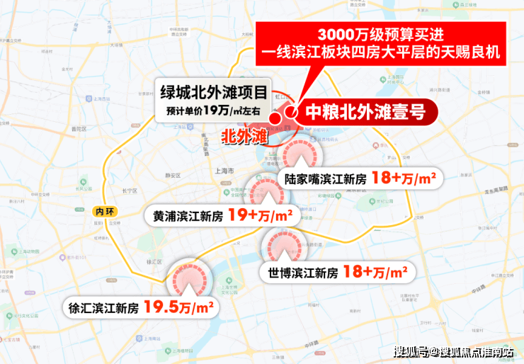 中 粮北外滩壹号拿地更早,同样属于北外滩红线范围里,与绿城项目几乎呈现掎角之势,而据知情人士透露,该项目的预计价格仅约15-16万/㎡,项目主推建面约185-228㎡四房,总价约3000万级!如果属实,这个价格无疑是北外滩错过再无的抄底机遇!