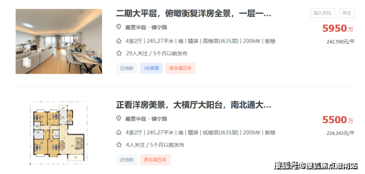 这个小区的挂牌均价不过15-16万/㎡,但高区能看低密洋房的房源挂牌价普遍超过20万/㎡,最高能超过24万/㎡。