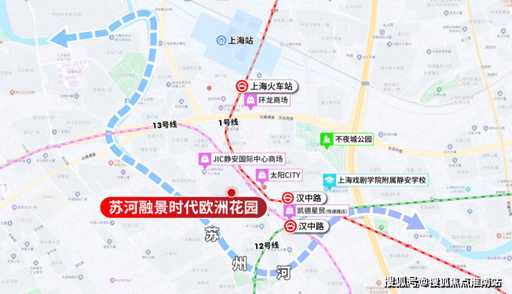 据悉,苏河融景整个小区由汉中路、长安路、普济路与恒丰路围合,临近汉中路地铁站和苏州河滨河景观带,生活配套便利,居住氛围闹中取静。