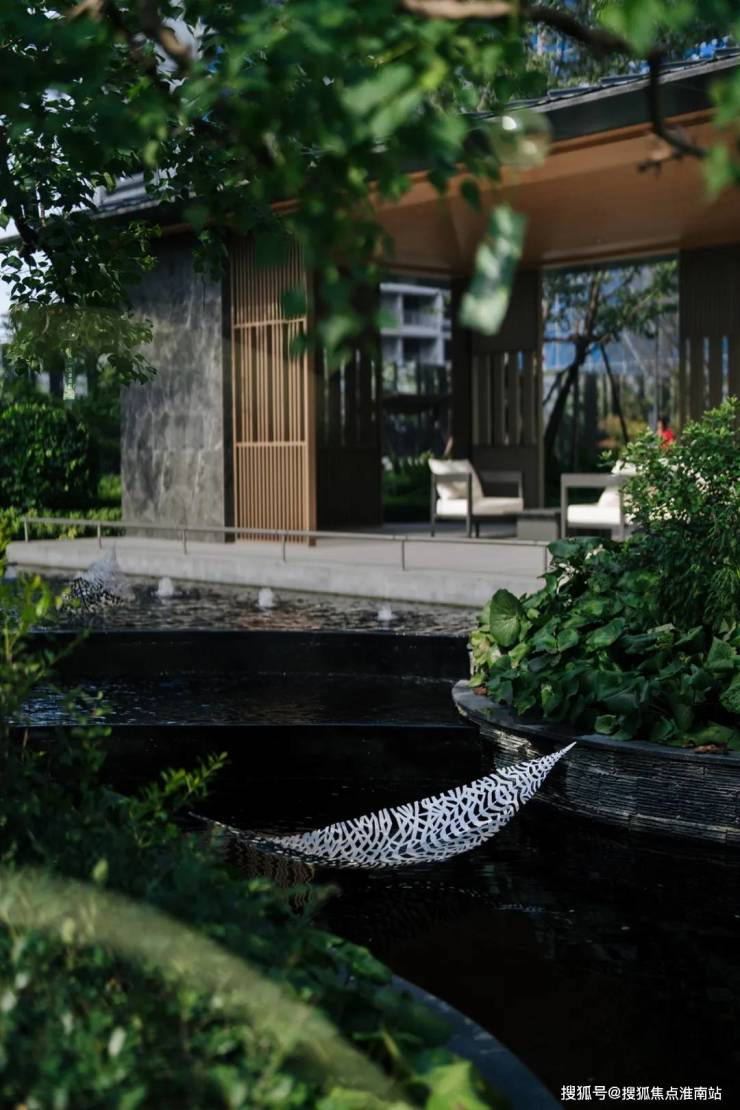 三进礼序的 星级酒店式归家礼序,具有很强的仪式感。进入园区,多处叠水与乔木、灌木共同营造的归家空间。