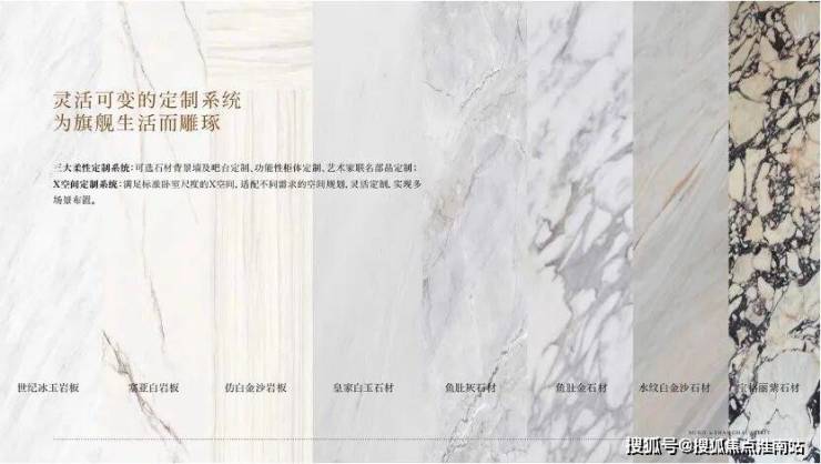 石材背景墙、岛台及柜体凹龛台面提供世纪冰玉岩板、塞亚白岩板、皇家白玉石材等多款珍稀石材可选。