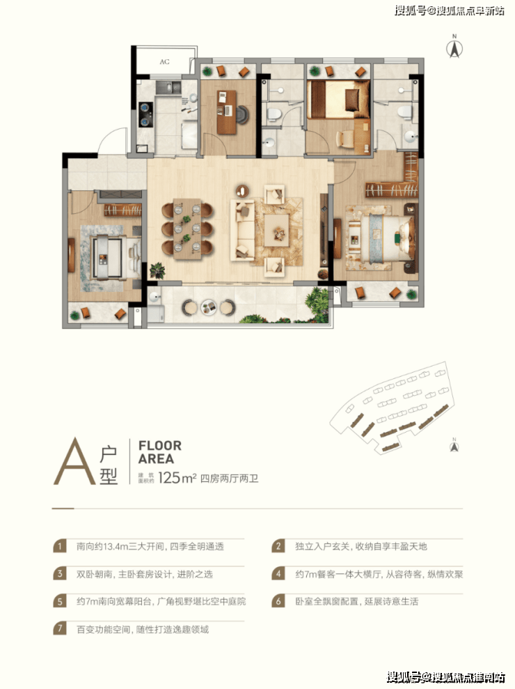 建面约125㎡,4室2卫