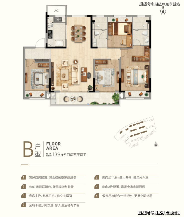 建面约139㎡,4室2卫
