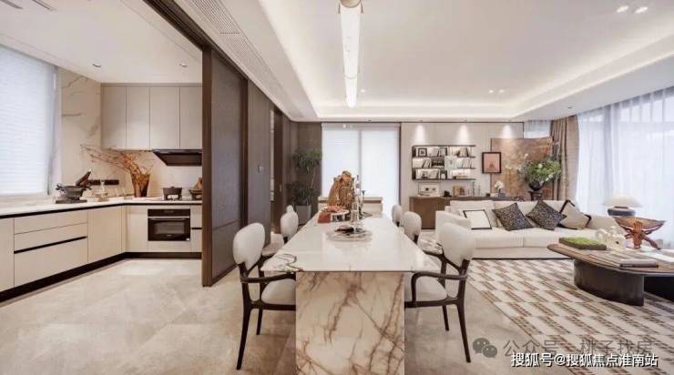 值得一提的是,约55平的宴会级无界方厅,采用LDKB一体化设计,将客餐厅、厨房、阳台全部打通,形成一个开放灵活的多功能聚厅。