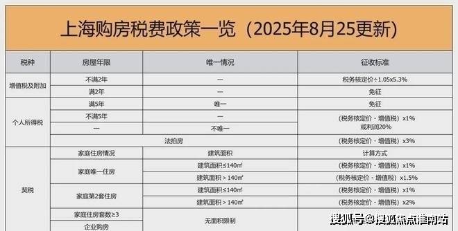 三、上海2025年8月最新购房税费政策