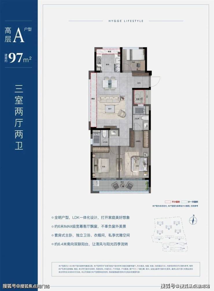 高层三房,功能齐备,采用动静分区设计,让家人生活亲而不扰。LDK一体化空间,配置 imax级宽幕飘窗,营造居家无界视野。