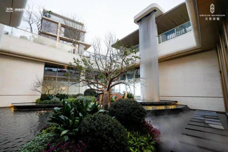 下沉式庭院会所匠心打造健身房、瑜伽室、私宴厅、棋牌室等功能空间,不仅是生活场域的延伸,更是一处为志趣与社交量身定制的精神私域,让圈层交流在静谧雅致中自然生发。庭院中,约10米落差金属挂帘流水瀑布如丝如缕,姿态优美的羽毛枫与黑金沙花岗岩树池相映成趣,让每一次步入都成为一场意境漫游。