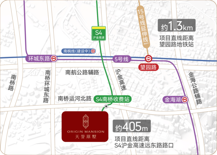 便捷交通:项目距离S4沪金高速远东路路口直线距离约405m,快速北上抵达市芯;解放路、环城东路等核芯干道,接驳全市路网,;直线距离约1.3km望园路地铁站:地铁5号线、15号线南延伸(建设中)、南枫线(建设中),三轨交汇,畅达全城。*数据来源于百度地图