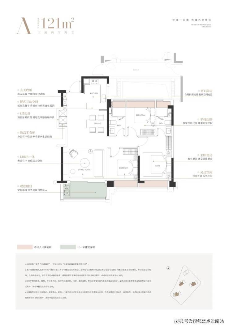 建面约121㎡3房: